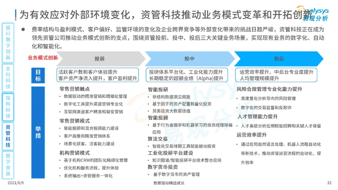 以大数据、人工智能、物联网、区块链等为代表的数字科技驱动金融产业数字化方兴未艾,数字科技使得金融和科技两个领域产生更紧密的场景联结,使得数字科技服务可以更早、更有效地介入到金融产业增长模型中去,更早的融入到企业和个人的资产生成过程,并从根本上提升金融机构资产透视能力和资产定价能力,帮助金融机构和实体部门降低成本、提升效率、增强用户体验及优化业务模式。